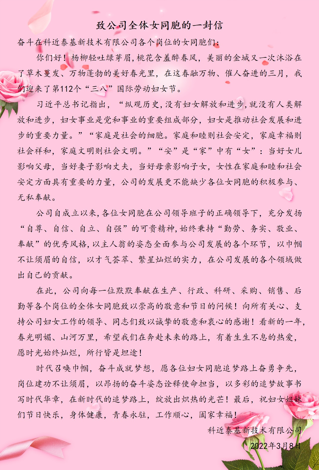 致公司全体女同胞的一封信